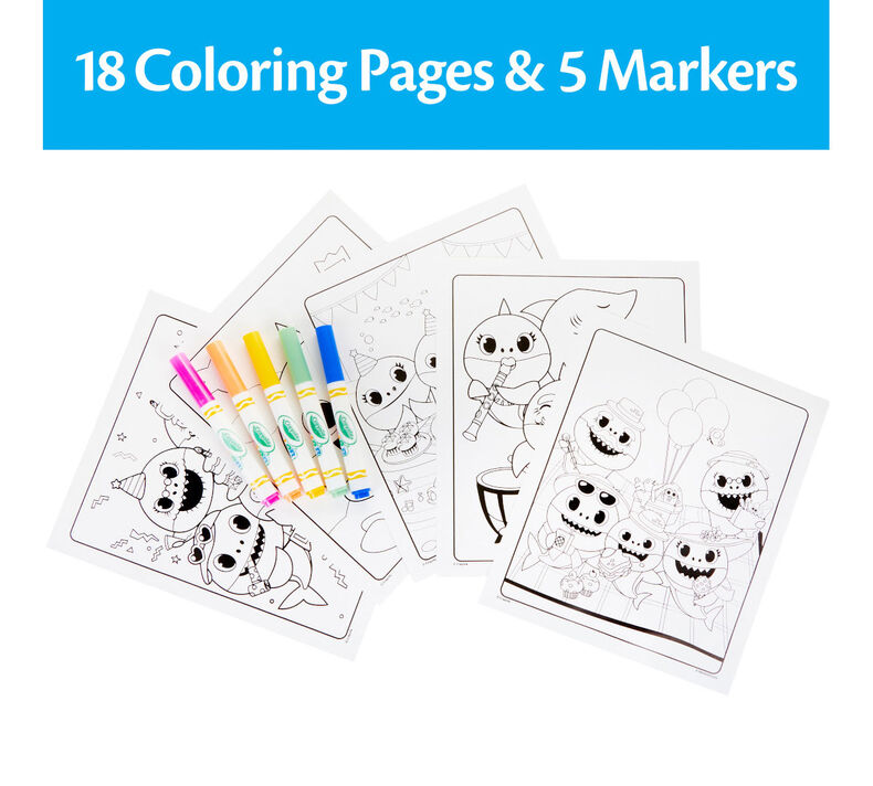 Amazon.com: Crayola Baby Shark Coloring Pages and Stickers ... This Crayola Color & Sticker book offers 32 Baby Shark Coloring Pages and 4 Sticker Sheets—over 50 stickers! Kids can enhance their coloring artwork with characters from the coolest web sensation, the Baby Shark song! Baby Shark fans can Color & Sticker on the go or at home—wherever they roam! Crayola Baby Shark Giant Coloring Pages DetailsLarge, 12-3/4 x 19-1/2" pages are perfect for beginning and advanced coloring enthusiasts. Package includes 18 sheets, featuring assorted black and white drawings of Baby Shark with her family and friends. Add your own color with crayons, colored pencils, markers or paint. Then give them as gifts, or create your own gallery of art! For ages 3 and up.