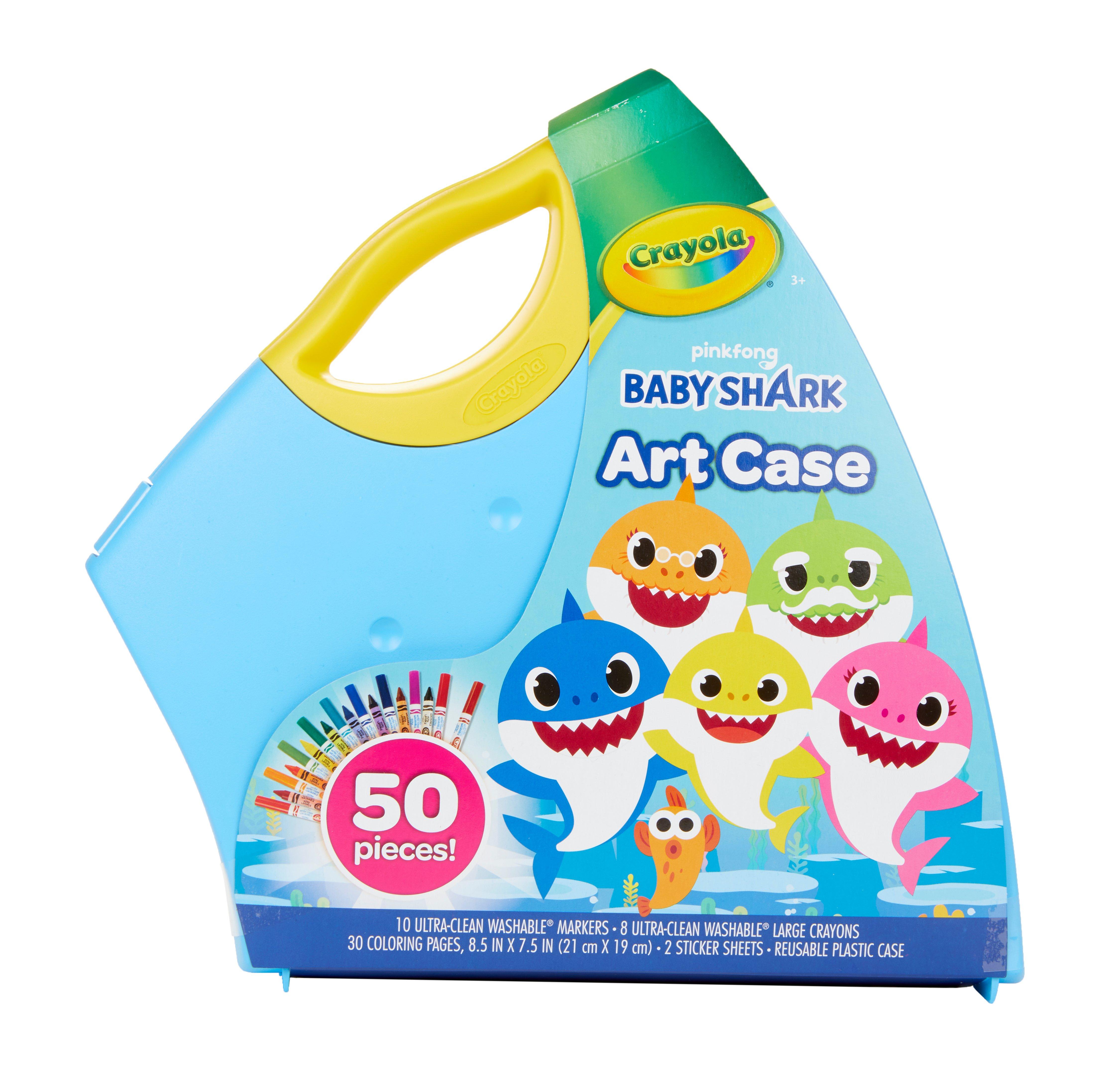 Baby Shark 90-Piece Art Set by Crayola Fans of Baby Shark will love coloring in Baby Shark Stickers to embellish their coloring pages or decorate their school supplies; Crayola Washable Markers and Crayons, wash from skin, most washable clothing and furniture; The perfect coloring set for birthdays, holidays and everyday gifting; WHAT'S INCLUDED. 90-piece set includes 40 crayons, 35 ...